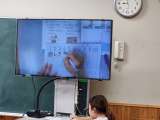 長さの学習です。単位の書き方を学んでいます。ペアで互いの書き方を確かめています。