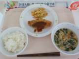 本日の給食は、ごはん・魚のフライ・野菜の和風ドレッシング・かきたま汁・牛乳です。