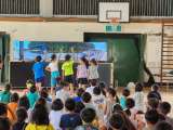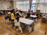 水族館見学から戻りました。4校で交流遊びをします。「電子レンジ」鬼ごっこです。 ...