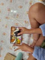 お弁当のじかんです。1日目よりも気温が下がり涼しい河口湖です。おいしくお弁当をい...