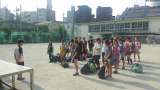 今学期最後の避難訓練です。休み時間に火災が発生したという仮定で行いました。最後に...