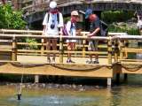 日光江戸村体験、見学中です。鯉にエサやり中です。