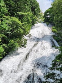 華厳の滝を見学しました。水量が多くて水しぶきが見学場所まで降り注いでいました。迫...