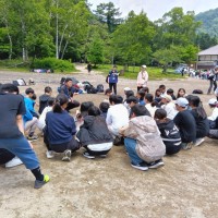 2日目の夜のレクリエーションの打ち合わせ中です。学年で楽しむために準備をすすめて...