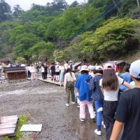 湯滝です。昨年に比べて水の量が多く感じて迫力があります。子どもたちは、これから湯...