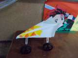 紙飛行機に車輪をつけて後ろから風邪を受けて 滑走するようにしました。 ビーズでの...