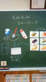 わかば学級でシャーベットを作りました。 凍らせたヨーグルトに果物を入れて食べやす...