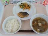 本日の給食は、ごはん・さばの味噌煮・やさいのからしじょうゆかけ・けんちん汁・牛乳...