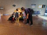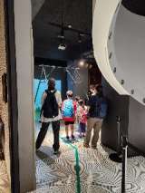 見学、体験中です。センサーで反応して、犬小屋から吠え声が聞こえる展示物に夢中です...