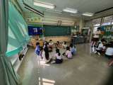 きょうは、プラネタリウム見学をします。 窓からは、他学年の見送りがありました。