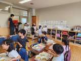 本日は、中秋の名月です。 給食も中秋の名月を意識して、フルーツポンチの中に白玉が...