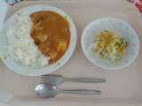 本日の給食は、ハッシュドポークライス・パリパリサラダ・牛乳です。