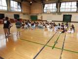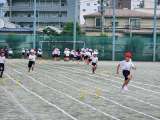 校庭で、2クラス合同でミニハードルを使い、障害物の飛び越し方を学習しました。 ...