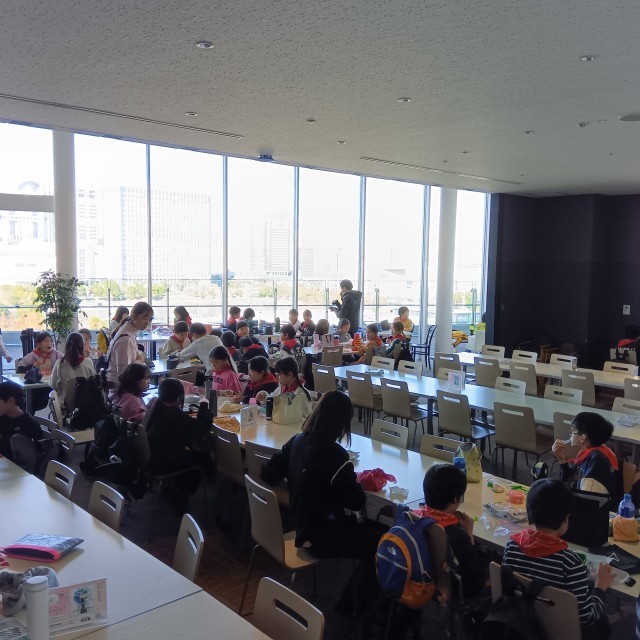 日本科学館で、美味しいお弁当を食べています。いただきます!