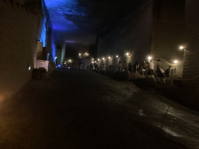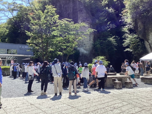 高速道路を降りてしばらく走行し、大谷資料館につきました。大谷石の採掘や運搬具など資料が展示されていました。とても広々としています。涼しい洞窟内はカラフルなライトアップがしてあり、異次元空間のようです。子どもたちは「すごーい」の歓声でした。
