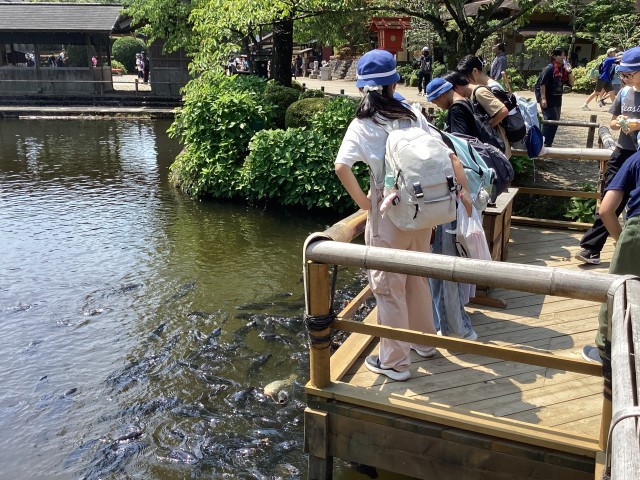 次はどこに行こうかとみんなで話しました。お土産もたくさんあって選ぶのに迷います。アイスを食べたり、かき氷を食べたり、ラムネを飲んだり、美味しそうでした。魚のえさやり体験もしていました。つづく。