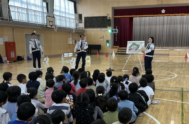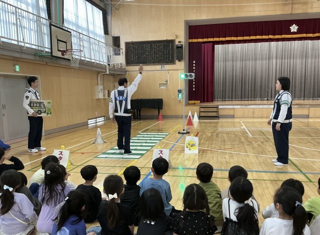 警察の方や保護者の方に見守られながら、交通ルールを確認することができました。