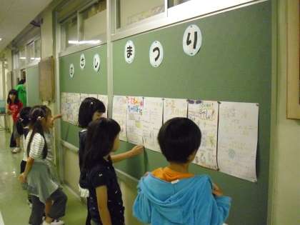 みんなが楽しみにしている「むさしまつり」がいよいよあと2日後に迫りました。今朝の児童集会は「むさしまつり宣伝集会」。各クラスとも短い時間で工夫を凝らし、お店の紹介をしてくれました。土曜日に向けて各クラスとも盛り上がっています。