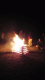キャンプファイヤーは大成功!みんなの心が一つになりました。明日の布団の片付けの講習が終わったら、プレミアムバナナが待っています!