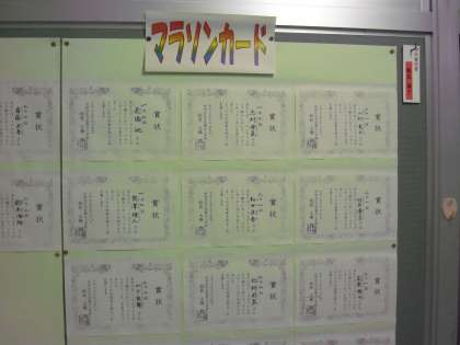 11月中旬より、マラソンカード(京王線持久走カード)に取り組んでいます。低・中・高学年と、1周の長さは違いますが、1年生は290周、2年生以上は330周走ると、新宿駅から出発して、高尾山口駅に到着するようになっています。子どもたちは、体育の授業や、ハッスルタイム、休み時間などを利用して走ります。1周1マスなので、なかなか進みません。でもその中で、17人の子どもたちがカード1枚を終了しました。職員室前に掲示してありますので、是非ご覧ください。この取り組みは、今学期いっぱい続きます。多くの子どもたちがマラソンに取り組み、表彰状を手にしてほしいと願っています。