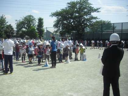 5月5日には、東京でも大きな地震がありました。千代田区では、震度5弱、東日本大震災以来の大きさでした。地震はいつ起こるかもしれません。それだけに、今日の訓練はとても大切なものです。以前は、9月1日の「防災の日」に引き渡し訓練を行っていましたが、なるべく早く訓練を行おうと、本校では、5月にこの訓練を実施しています。