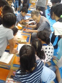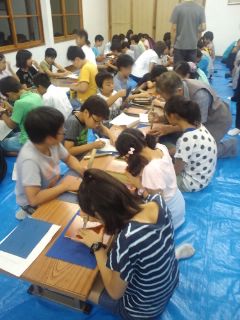 楽しい夕食の後は、日光彫りの体験です。名人の技に思わず拍手が起こります。そして、今度は自分の彫りに挑戦!慎重にみんな頑張れ!