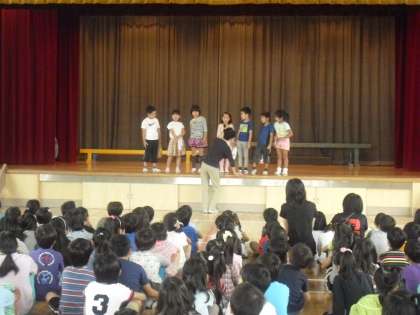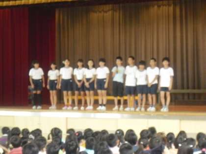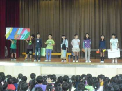 いよいよむさしまつり当日まであと3日となりました。9日(木)の児童集会は「むさしまつり宣伝集会」でした。各クラスの宣伝マンたちが、工夫を凝らして約1分間で自分のクラスを紹介をしました。楽しい企画が満載!!どのクラスもいろいろなコーナー(お店)を出していて、とても楽しそうです。