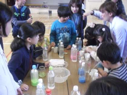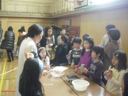 PTAの家庭教育学級の担当スタッフも、白衣に身をつつみ研究助手として活躍されました。松延先生、企画運営等のPTAのスタッフのみなさん楽しい時間をありがとうございました。