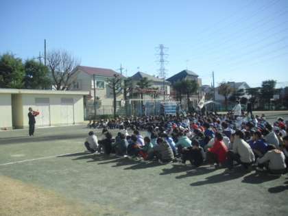 楽しいゲームの後は、今年最後の避難訓練。中休みに「緊急地震警報」が流れました。いつもの避難訓練は教室で、先生の指示に従って動きますが、休み時間は自由行動です。先生が近くにいない時に、大きな地震が起こった場合どう行動すべきかを自分で考えて避難します。地震等災害には、いつどこで遭うかわかりません。訓練を積み重ね、どんな時でも自分の身を守れるように、冷静に正しい行動を取れるようにしておくことが大切です。