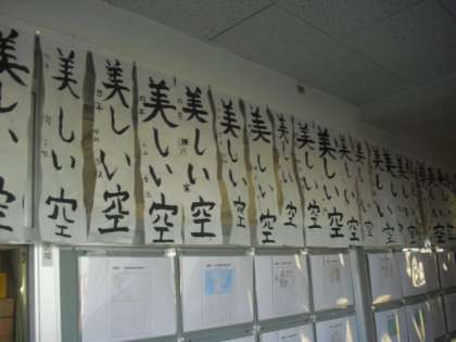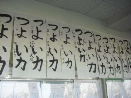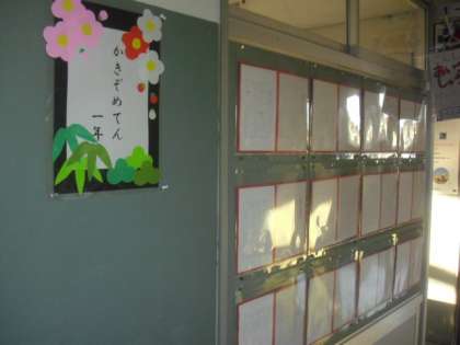 今日、19日〜23日まで「書き初め展」が開催されています。1・2年生は硬筆、3年生からは毛筆です。お正月に一生懸命練習をした成果が、一文字一文字に込められています。とても素敵な文字を見に来てください。学芸会の写真も掲示してありますので、よろしくお願いします。