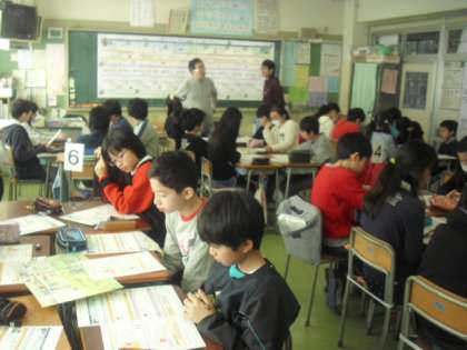 19日(木)6年生は(財)日本経済教育センターから2人の講師の方に来校していただき、生きる力を育む経済教育「今日から私もすし経営」を行いました。班に分かれ、お店の名前を決めたり、駅前か郊外どちらに作るのがよいのか、利益を増やすためには2つの作戦について選択・決定をしていきます。最後に1年後の結果は?授業を通して子どもたちは、私たちの社会では思ってもいなかったことが起きることや自分で選択して決定したことは自分に責任があること、使えるお金や時間は限りがあることなど学ぶことができました。