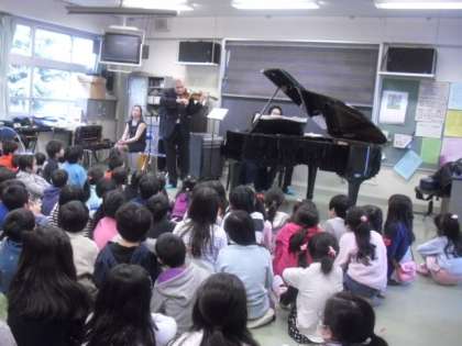 最後は、世界的演奏家であるルツ・レスコヴィッツさんによる名器ストラディヴァリウスで奏でるモーツァルト、ベートーヴェンの作品等を鑑賞する音楽会でした。素晴らしい音色に子どもも大人も感動しました。