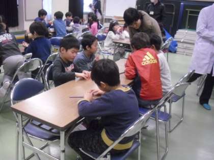 前半は、3か所に分かれて、楽器制作、弦楽器演奏体験、ピアノ演奏鑑賞を行いました。ストローで楽器を作ることを通して、「なぜ、楽器は音が鳴るのか」を実感しました。バイオリンやチェロに触れ、演奏しました。プロのピアニストによる演奏をグランドピアノを囲んで聴きました。