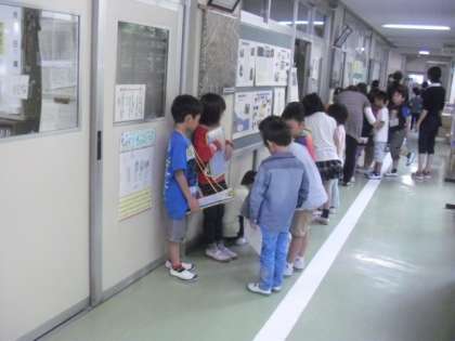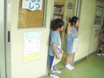 28日(火)・30日(木)の2日間、1年生が2年生と一緒に「学校探検」をしました。2年生とグループを作り、校舎の中を歩き回り、武蔵丘小学校の色々な教室を2年生に案内してもらうという活動です。2年生が作ったバッチを胸に、手をひかれながらついていく1年生。1年生に一生懸命説明したり、1年生が迷子にならないように声を掛けてあげながら、移動している2年生。2年生の姿は、1年間の経験を積み上げ、成長した姿が見られました。立派でした。新年度が始まって1カ月がたち、やっと生活にも慣れてきたようです。どの学年も運動会の練習が始まっています。GW明けたら、運動会の特別時間割になります。
