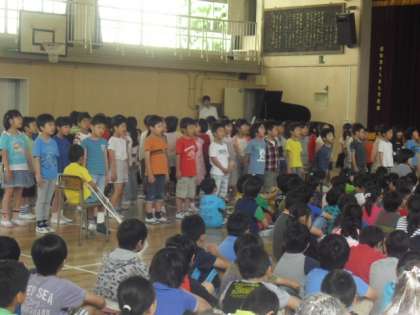 30日(木)音楽集会で、離任式に歌う「ありがとうさようなら」の練習をしました。お世話になった先生や主事さん方に、歌で感謝の気持ちを表せるといいですね。