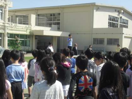 全校朝会では、校長先生が5月の人格の形成のテーマ「思いやり」について話されました。思いやりの心を育てるためには、相手の気持ちを考えて行動することです。でも相手の気持ちはなかなか分からないので、普段から相手の気持ちを考える練習をしていくことが大切です。また、自分がやられていやなことは、相手には絶対しないことです。