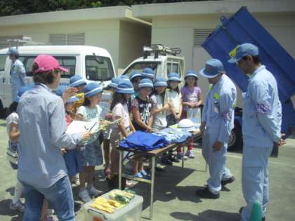 1日は、4年生の総合学習の時間「ごみ問題を考えよう」をテーマに、清掃工場の方々にきていただき「ごみ」についての出前授業を行いました。ゴミ収集車体験号「カティ」や清掃工場の方のお話を聞いて、私たちの身近なごみ問題について理解を深めることができました。今後の学習につなげていきます。