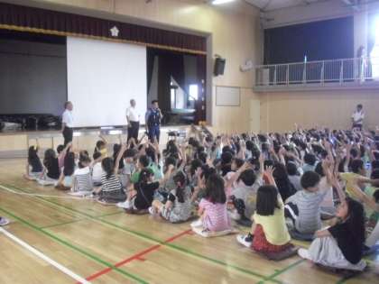 学校公開期間が始まりました。たくさんの保護者・地域の方の参観がありました。学校運営委員会主催の「読み聞かせスタッフ説明会」も開催され、たくさんの保護者の参加もありました。また、成城警察からスクールサポーターの方を迎え、5時間目は低学年、6時間目は高学年で「セーフティ教室」を行い、たった一つの自分の命を守る「防犯」に関する勉強をしました。その後、保護者・地域の方、警察・教員とで情報交換を行いました。ご参加ありがとうございます。