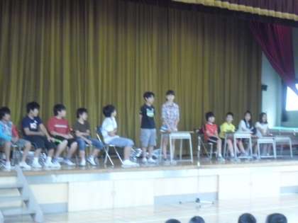 教室で「サッカーボウリング」「ステージ」でお客さんをおもてなしします。