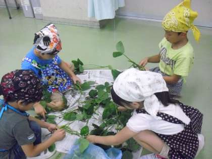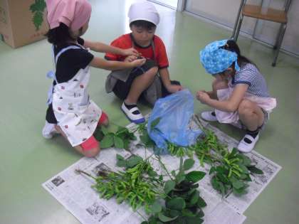 7日(火)1年生が給食に出される枝豆のさやもぎをしてくれました。あっという間に終わって栄養士さんがビックリしていました。みんながさやもぎをした枝豆は塩ゆでされて、給食に出されました。枝豆をいの一番に「美味しい!!」といって食べていたようです。1年生のみんなありがとうございました。