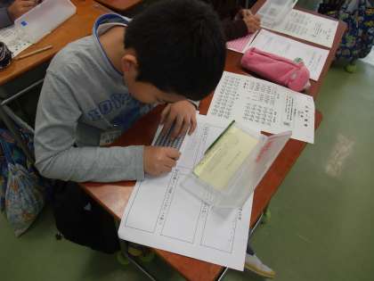 教室にもどって点字も教えていただきました。しくみを教わった後自分の名前もうつことができ、子どもたちもよろこんでいました。調べるだけでなく久我山盲学校の活動を知ったり、いろいろな体けんをしたり、バリアフリーをより深く理解することができた学習でした。