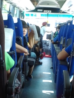 バスは順調に進み、予定より15分早く、9時羽生PAに到着しました。バスはレクで盛り上がっています♪弦巻小と一緒になりました。