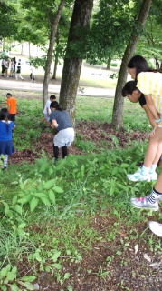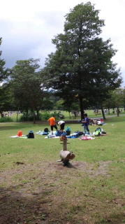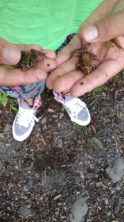 食後の遊びは、鬼ごっことカエル取り。いっぱいカエルを捕まえました。遊び時間はまだまだたっぷりあります!