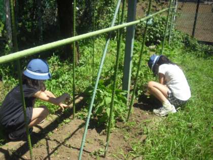 最後の水泳指導が終わって、4年生の「人権の花」ボランティアの4人の子どもたちが、教材園の雑草を抜いたり、花に水をやったりしてくれました。ありがとうございます。