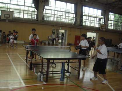 今日のメニューは、「百人一首、坊主めくり」「初めてのお習字」「卓球」です。卓球教室では、烏山中学校の19名の卓球部員がボランティアとして参加してくれました。丁寧に子ども達の指導をしてくれました。