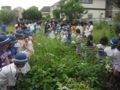 先週、3・4日の朝、草取り集会を行いました。夏休みの間に思いっきりのびた教材園や校庭の周りの雑草を、みんなで一生けん命ぬきました。おかげで、とってもきれいになりました。