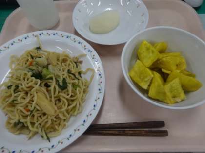 今日は塩焼きそば、シナモンポテト、なしでした。