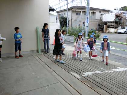 5日(月)から毎月1回実施している「あいさつ週間」がはじまりました。朝早くからムサシの子供たちの「おはようございます」の元気な声が響きわたってきました。