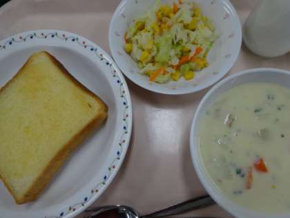 今日はバタートースト、ホタテのチャウダー、千切りサラダでした。ホタテのチャウダーはほたてが好き・うれしいという児童ときらい・食べたことがないという児童がいました。