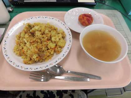 今日のこんだては、 ツナピラフ・キャベツスープ・とうふのナゲットです。